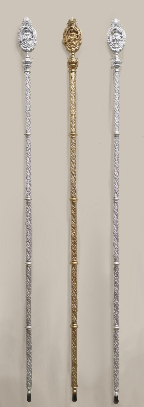 A fin de enriquecer el patrimonio de nuestra Hermandad, se ha realizado un juego de cinco nuevas varas, encargadas al taller del orfebre sevillano Antonio Santos.